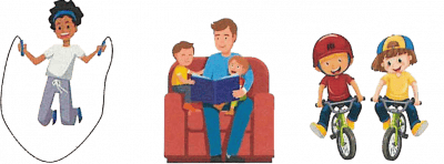 - Roller oder Fahrrad fahren, Seil springen, Ball werfen und fangen, Gummitwist
