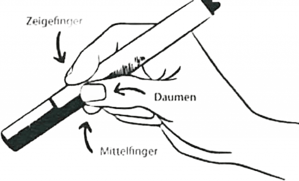 Mit diesem 3-Punkt-Griff sind die Finger und der Stift bei aufliegendem Handgelenk am beweglichsten.